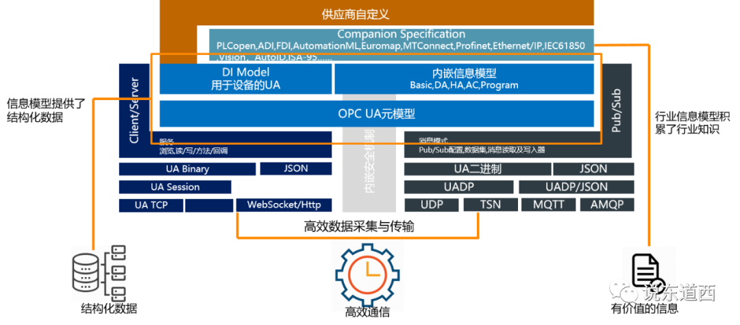 在工業里OPC UA即扮演這樣一個角色,提供結構性的數據,為數據在地址空間的存儲提供了統一的結構、類型、屬性等標準,并支持各種通信模式,以及提供了行業信息模型的集成。